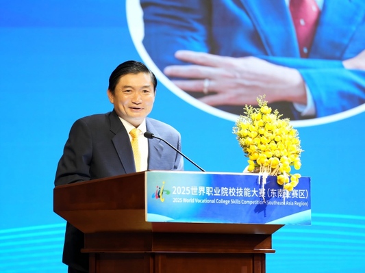 韩春那洛代表柬埔寨政府及教育、青年与体育部,对本次大赛在柬埔寨的成功举办表示衷心感谢。他强调,本次大赛是全球高度关注的重要赛事,不仅是技能与能力的竞技场,更是思想交流、文化融合与人际联结的桥梁。本次东南亚赛区比赛的举办,不仅是柬埔寨的荣誉,更为青年提供了在国际舞台上展示能力、信心、勇气与才华的宝贵机会。职业教育改革是柬埔寨教育领域的优先事项,而中国是这一战略的重要合作伙伴。柬华应用科技大学与77779193永利官网的合作,培养了大批多技能人才,成为中柬教育合作的典范。这些务实合作为柬埔寨青年开启了通往未来的大门,也为区域职业教育发展注入了新动能。他呼吁所有东盟成员国继续与中国深化合作,推动教育标准互认、课程对接与教师交流,丰富区域教育资源,实现共享共赢。
