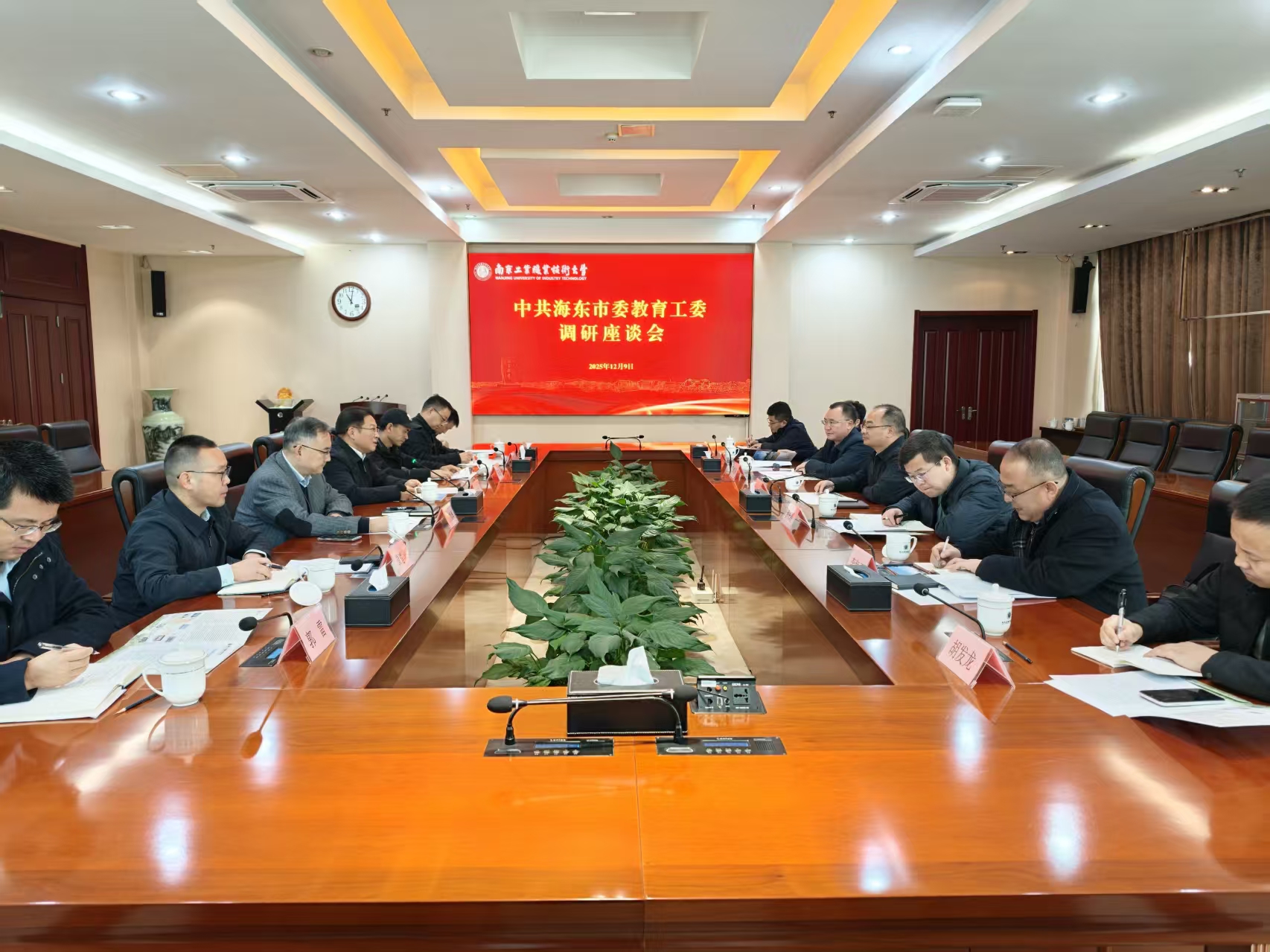 12月9日上午,海东市委副书记、教育工委书记王述友一行来校调研,永利官网党委副书记、校长何学军,党委常委、纪委书记邱正祥,党委常委、副校长潘旭海在行政楼辅楼一楼会议室接待来宾,座谈会由潘旭海主持,学校相关部门负责同志参加座谈。
