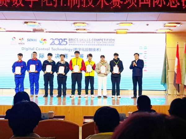 12月13日至16日,2025金砖国家职业技能大赛“数字化控制技术”赛项国际总决赛在济宁职业技术学院圆满举行。大赛汇聚了来自金砖国家及地区的40余支精英队伍同台竞技。永利官网电气工程学院代表队表现出色,凭借扎实的专业技能与稳定的现场发挥,在激烈角逐中脱颖而出,一举斩获国际总决赛一等奖。