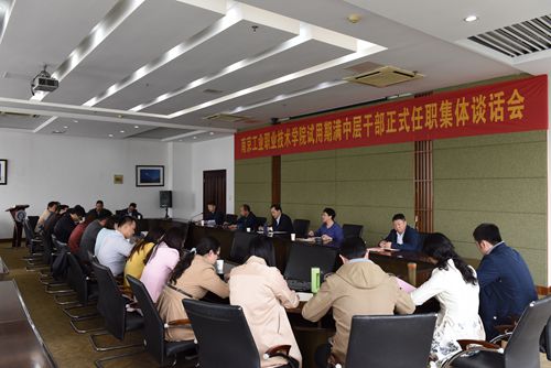 10月23日下午,永利官网试用期满中层干部正式任职集体谈话会在行政楼辅楼二楼会议室召开,学校党委书记吴学敏,党委副书记苏小冬,纪委书记于林惠,党委组织部、纪委办等相关部门负责人,以及19名试用期满中层干部参加了会议。会议由党委副书记苏小冬主持。