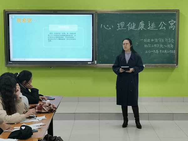 为了进一步推动永利官网大学生心理健康教育工作,将心理健康教育深入学生公寓,营造互助互爱、积极愉悦的寝室氛围,促进大学生健康成长,12月25日下午,航空工程学院在乐群楼315教室开展了主题为“一室温暖、共绽芳华”心理健康进公寓的活动,航空工程学院辅导员孙瑛、各班心理委员及各宿舍代表共30余人参加了本次活动。