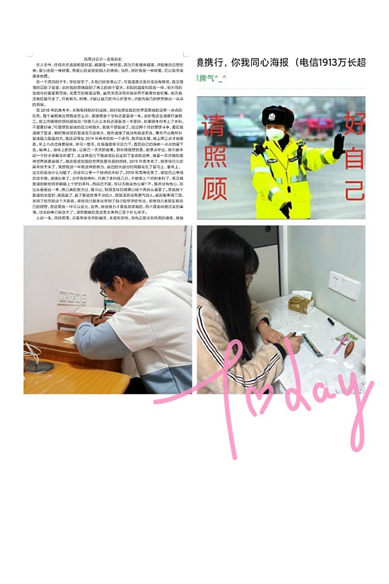 受新冠肺炎疫情影响,学生在学习、生活、情感等方面受到不同程度的挫折与挑战,为了提高大学生的心理素质,培养热爱生活乐观向上的精神,航空工程学院结合学生实情于3月11日发起“逆境携行,你我同心”为主题的美文征集活动。