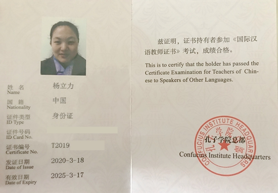 永利官网国际教育学院杨立力老师几年来承担了留学生《汉语综合》等课程,于2019年12月参加了国际汉语教师资格考试,现已顺利通过,并取得资格证书。