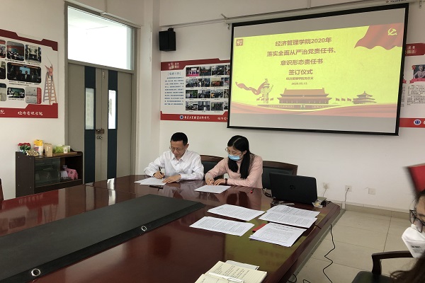 最后,陈林杰分别和三个支部书记签订了意识形态责任书。支部书记们纷纷表示意识形态工作是党的一项极端重要的工作。高校意识形态工作面临的形势更加复杂,风险挑战更加严峻。各支部一定努力维护经管院意识形态安全,推动经管学院事业健康发展,为学院人才培养的高质量发展提供有力的思想保证、舆论支持和精神动力。