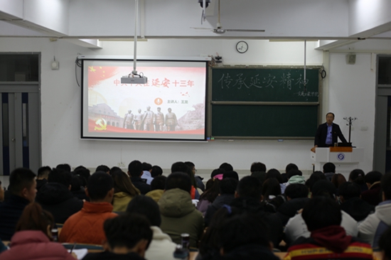 为引导学生积极学习“四史”,弘扬民族精神和时代精神,12月7日晚,交通工程学院在乐群楼J201举行“传承延安精神”专题讲座。此次讲座邀请到在永利官网挂职的延安职业技术学院学生处副处长、延安干部学院特聘教授王龙为同学们授课,学院党总支副书记许伟、全体青马班学员和党课学员参加。