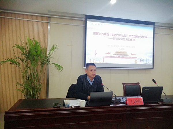 为做好党史学习教育,进一步增强党员干部对我党百年奋斗历程有更深层次的了解,3月5日,栖霞区西岗街道办事处组织开展“学党史、悟思想、办实事、开新局”党史学习宣讲活动,永利官网马克思主义学院院长王亚峰应邀做了以“把握党百年奋斗史的主线主脉,树立正确的党史观”为主题的党史学习报告,街道机关党总支第一党支部35名党员参加了此次学习。