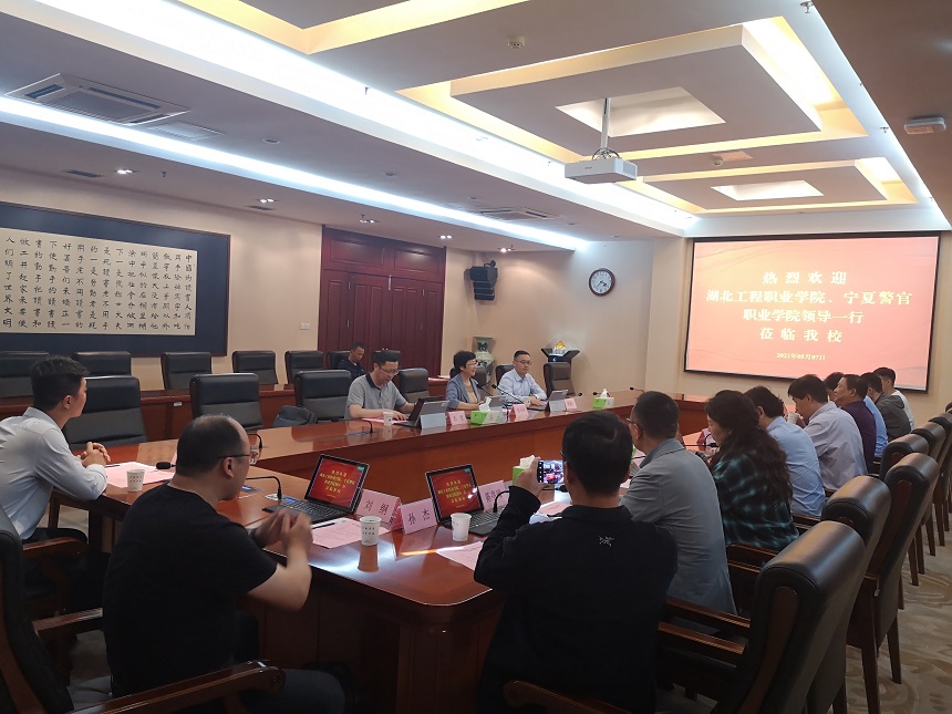 5月7日下午,湖北工程职业学院副院长陈彪彪、宁夏警官职业学院信息中心主任杨建平一行来永利官网考察调研智慧校园与校园网络建设。党委常委、副校长苏小冬,以及校长办公室、信息化建设与管理处等部门负责同志在行政楼辅楼一楼会议室接待了来宾。
