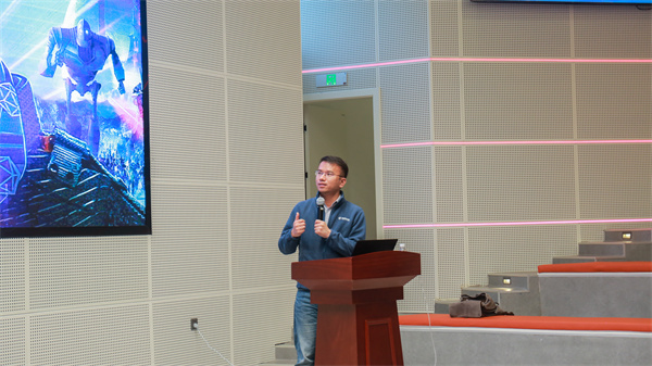 张帅作了“走进我们身边的平行数字空间——探索增强现实元宇宙”主题分享,从元宇宙的概念、增强现实元宇宙、AR编辑器、AR技术应用等方面,通过典型案例介绍与视频演示,带领同学们初步体验了增强现实元宇宙世界。主题分享结束后,张帅博士与现场同学进行了互动交流,他希望更多爱好科技创新的同学,可以通过元宇宙一窥未来数字世界,利用身边的多媒体内容素材创作出自己的AR数字空间。