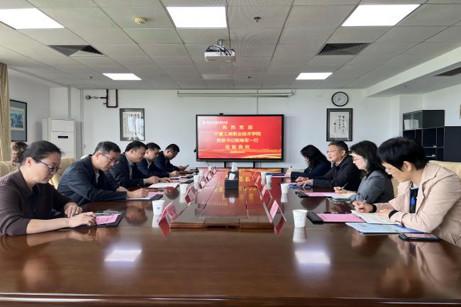 4月14日上午,宁夏工商职业技术学院党委书记陈晓军一行来永利官网考察调研。陈晓军一行参观了永利官网黄炎培职业教育思想展览馆、校史馆和工业中心实训基地。学校党委常委、副校长朱建国以及相关部门负责同志在仙林校区行政楼401会议室参加了座谈。