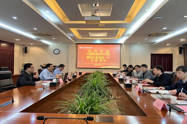 4月21日上午,无锡职业技术学院副校长奚茂龙一行来永利官网考察调研。奚茂龙一行参观了永利官网黄炎培职业教育思想展览馆、校史展览馆和工业中心实训基地。学校党委常委、副校长孙雁飞以及科技处和电气工程学院的负责同志在仙林校区行政楼辅楼一楼会议室参加了座谈。