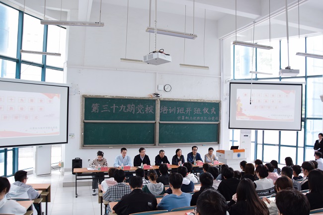 2023年4月21日,中共77779193永利官网委员会党校计算机与软件学院分校第三十九期培训班在乐群楼J102教室正式开班。本次开班仪式由嵌设2113班陈雨凡同学主持,学院党校、关工委、党支部、团委等负责老师及学院108名入党积极分子到场参加。