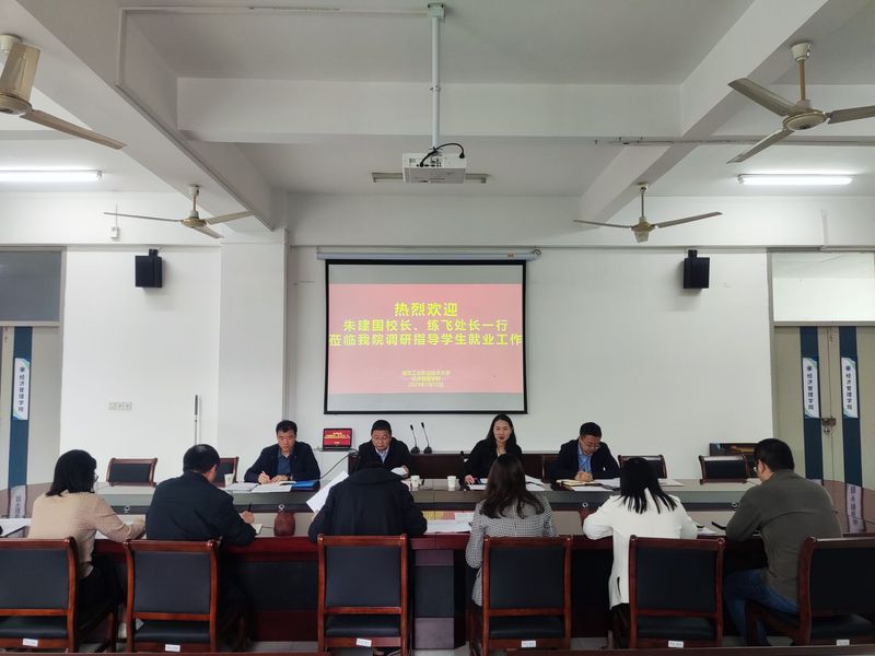 朱校长听取汇报后,对学院现阶段的做法给予了充分肯定,同时提出要求:一方面要建立就业工作全局观。学生的就业质量与专业教育质量紧密联系,要完善学院领导、系主任、班主任、辅导员全员参与的就业工作机制,形成合力,助推就业工作取得实效;另一方面要健全学生就业观,要积极引导学生深刻分析当前就业形势,对考研、考编的毕业生进行针对性的思想引导和有效建议,扎实推进就业工作有序进行。