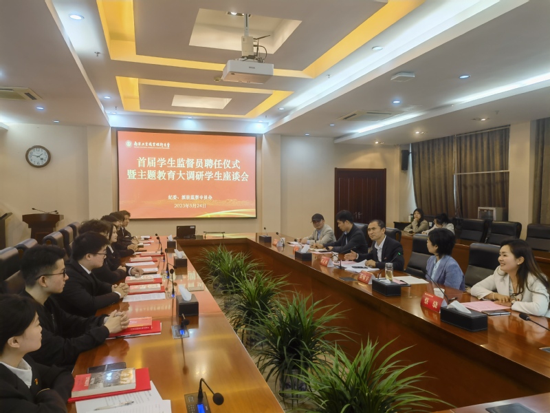 5月24日下午,校纪委在行政楼辅楼一楼会议室举行了首届学生监督员聘任仪式暨主题教育大调研学生座谈会。校党委常委、纪委书记、省监委派驻监察专员邱正祥出席会议并讲话。学生工作处、团委相关负责人、首届16名学生监督员、部分学生代表以及纪委全体人员参加了会议,会议由纪委副书记张啸宇主持。