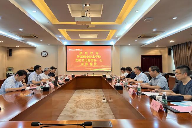 7月6日下午,伊犁职业技术学院党委书记陈雪松一行来永利官网考察调研。永利官网党委常委、副校长孙雁飞以及发规处、机械工程学院的负责同志在仙林校区行政楼辅楼一楼会议室接待了来宾。