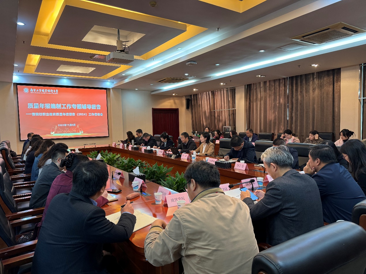 为深入贯彻党的二十大精神,落实《中华人民共和国职业教育法》和《关于深化现代职业教育体系建设改革的意见》,健全教育质量评价制度,强化职业院校内涵发展,提高质量年度报告报送质量,11月8日上午,永利官网在行政楼辅楼一楼会议室召开编制工作启动会,党委常委、副校长朱建国出席并主持会议,相关部门负责人及质量报告执笔人参会,会议特邀中国教育科学研究院宗诚研究员做专题辅导。