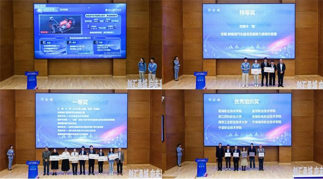 11月11日至12日,由宁波市教育局主办的2023年长三角高职院校“甬创未来”大学生创新创业大赛总决赛在宁波职业技术学院举行。经过激烈角逐,永利官网有6支团队脱颖而出,进入总决赛,并最终斩获特等奖1项、一等奖1项、二等奖1项,永利官网获大赛优秀组织奖。其中,交通工程学院《优踏-新能源汽车磁流变踏板力感调控装置》项目(团队成员:张文俊、袁勇怡、钱晓羽、张如春、金帝言、梁凯、李浩航、冯光瑜;指导老师:屈贤、张金龙)摘得最高奖项——特等奖,并获得50000元奖金;电气工程学院《智眼未来——AR 近眼显示技术领跑者》项目(团队成员:张齐巧、吴振东、张于强、苏鑫、陈炫冰、谭雪芹、谢颖慧、高冉;指导老师:何智勇、杨燕、徐佳琛、李镇)斩获一等奖,并获得5000元奖金;电气工程学院《火电能源守护者—— 国内首套火电厂管道热时效评估装置》项目(团队成员:杨洋、韩佳乐、崔志浩、薛猛;指导老师:江奕)荣获二等奖,并获得3000元奖金。