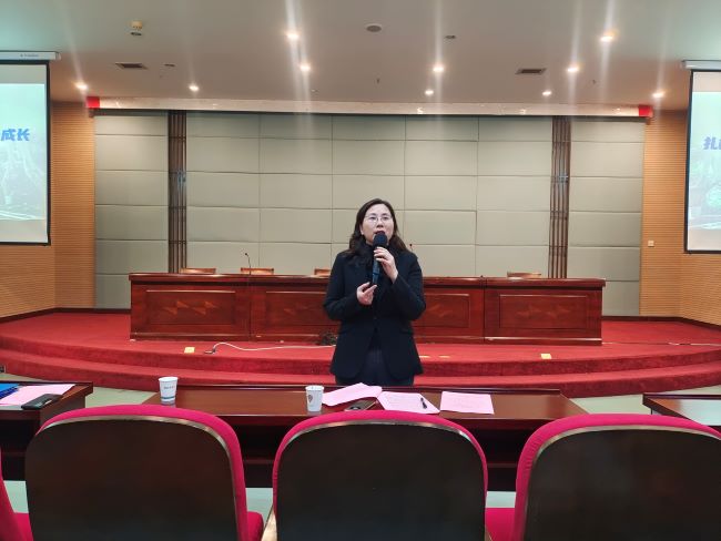 经济管理学院学工办主任严潇睿为大家作《感恩·热爱》主题报告。她和大家分享了其21年来开展学生工作的体会,比如要根据学生的差异性因材施教,要注重与学生面对面开展交流谈心等等。她总结到,辅导员要以爱心、信任为基石,以耐心、细心为桥梁,切实做到“脑中有思,眼里有光、心中有爱、手中有法、脚下有力”,才能真正成为学生成长成才路上的人生导师和知心朋友。