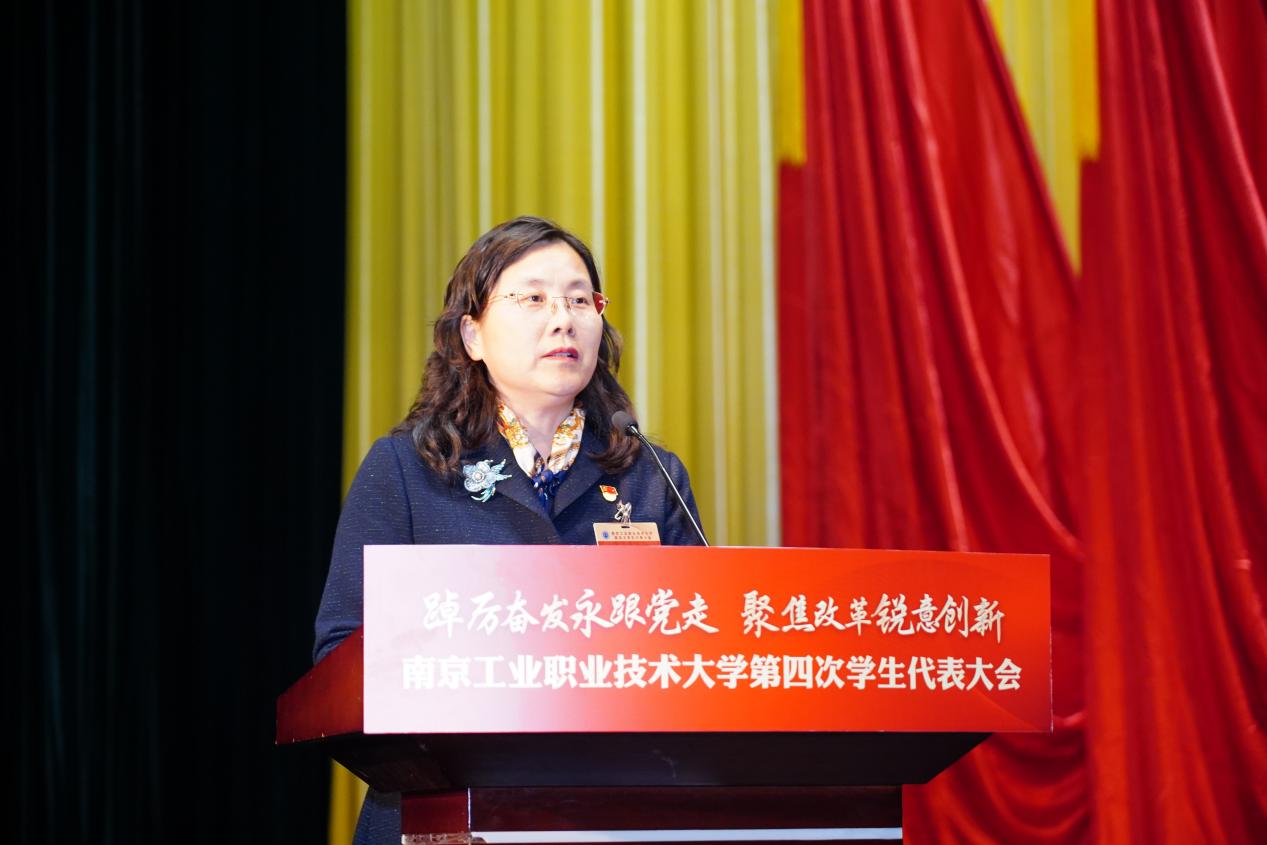 魏萍对本次大会的召开表示热烈祝贺,对校学生会的工作表示充分肯定并给予高度评价。她指出,学生会组织要团结带领广大同学踏实进取、开拓创新、积极探索学生会参与学校建设、服务同学成长的新思路、新方法,在思想引领、校园文化活动、校风学风建设、社会实践、维护学生权益等方面做出了积极的探索和努力,同时提出了四点希望和要求:一是希望各级学生组织锐意改革创新,加强学生会自身建设;二是希望各位学生代表真心履职尽责,服务青年发展;三是希望广大学生骨干勇担时代使命,发挥先锋作用;四是希望全校青年学子提升职教自信,争做技能人才。她号召广大青年牢记习近平总书记殷切嘱托,增强做中国人的志气、骨气、底气,不负时代,不负韶华,不负党和人民的殷切期望,把学生会建设成为有理想、有朝气、具人气、接地气的学生组织,发挥好桥梁和纽带作用。