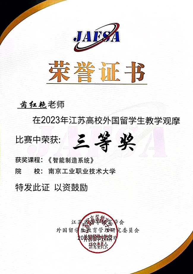 近日,第二届“江苏高校外国留学生教学观摩比赛”落下帷幕,今年全省共有42所高校的105门课程参加了比赛,永利官网芮红艳老师在本科理工组与东南大学、南京航空航天大学等“985”“211”“双一流”高校老师同台竞技,荣获本科组三等奖。