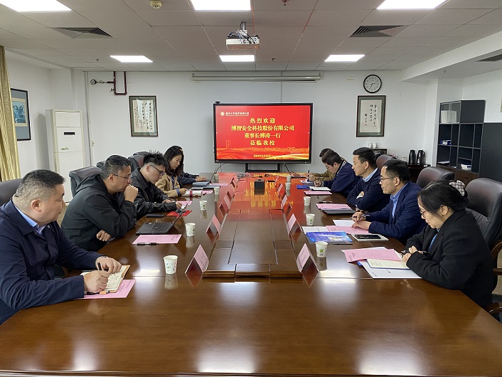 傅涛详细介绍了博智安全科技股份有限公司的行业特色、主要产品及校企合作项目。他表示,企业倡导多元、包容的企业文化,秉承“为国家安全锻矛铸盾”的企业使命,希望以此次来访为契机,在信息安全领域与学校进行强强合作,携手共促双方发展。