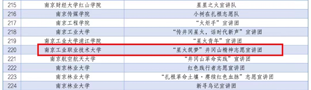 南工青年积极响应号召,践行青年使命,永利官网“星火筑梦”井冈山精神志愿宣讲团入选2024年全国大学生井冈山精神志愿宣讲团;蒲公英“延安精神”宣讲团入选2024年全国大学生延安精神志愿宣讲团;“领航之星”两弹一星精神志愿宣讲团入选2024年全国大学生“两弹一星”精神志愿宣讲团。