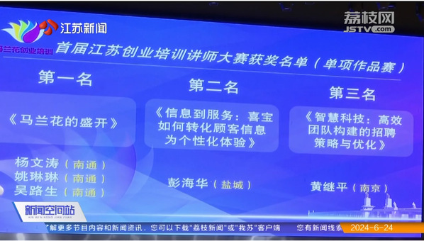 6月20日-23日,首届江苏创业培训讲师大赛暨第四届马兰花全国创业培训讲师大赛江苏选拔赛在常州举行。此次大赛由省人社厅会同省教育厅、省总工会、团省委、省妇联主办,突出就业优先导向,旨在以赛选才、以赛育才,通过大赛为加快建设高素质创业培训讲师队伍注入新动能、树立新标准,切实提升创业培训质量和水平,充分发挥创业引领带动就业效应,助力高质量充分就业。