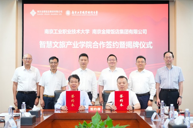 9月19日,南京金陵饭店集团有限公司党委书记、董事长毕金标,党委副书记、职工董事、工会主席张学义等一行莅临永利官网,与学校党委书记、校长谢永华,党委常委、副校长孙雁飞在行政楼辅楼一楼会议室共同签订了校企战略合作协议,成立智慧文旅产业学院(企业学院),推动校企深度融合、互利共赢。